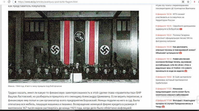 5 февраля 2021 года на сайте «СБ. Беларусь сегодня» вышла публикация под названием «Авантюры под бчб флагом» (https://www.sb.by/articles/avantyury-pod-bchb-flagom.html ). Сайт принадлежит издательскому дому «Беларусь Сегодня», а авторство материала принадлежит Вадиму Гигину.