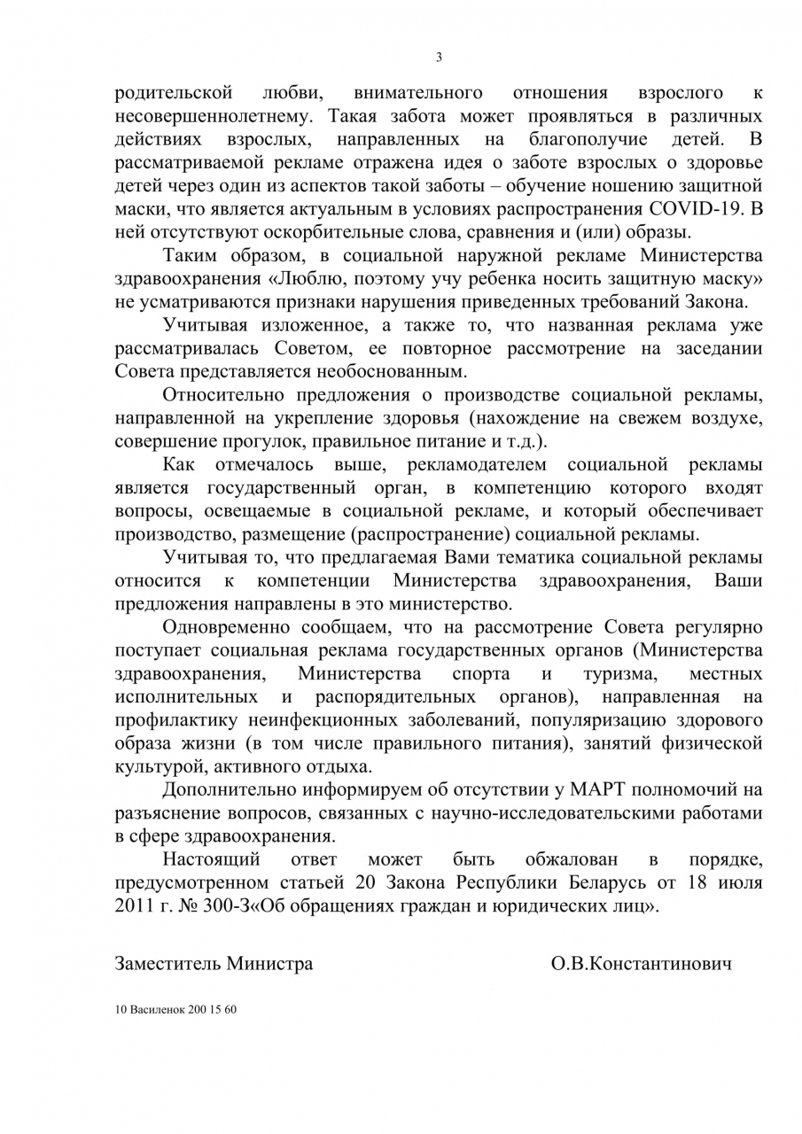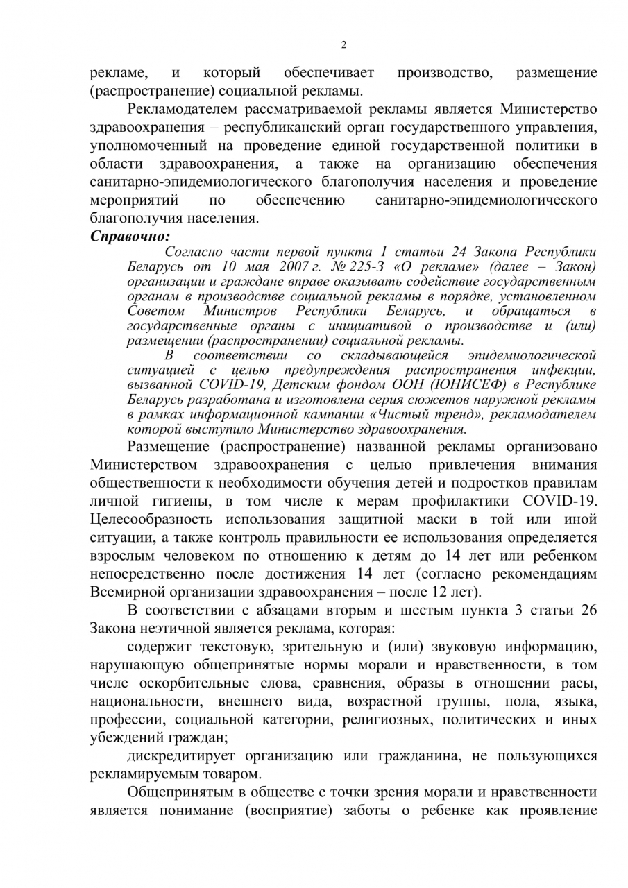 2. остановить размещение рекламной кампании «Чистый тренд» на тему ношения масок детьми и обучения их этому любящими родителями;