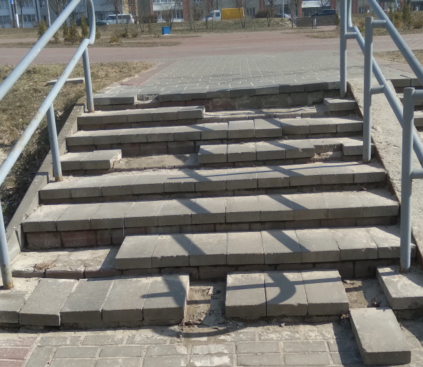 3) отремонтировать две лестницы в сквере. На лестницах частично отсутствуют ступеньки или ступеньки не закреплены.