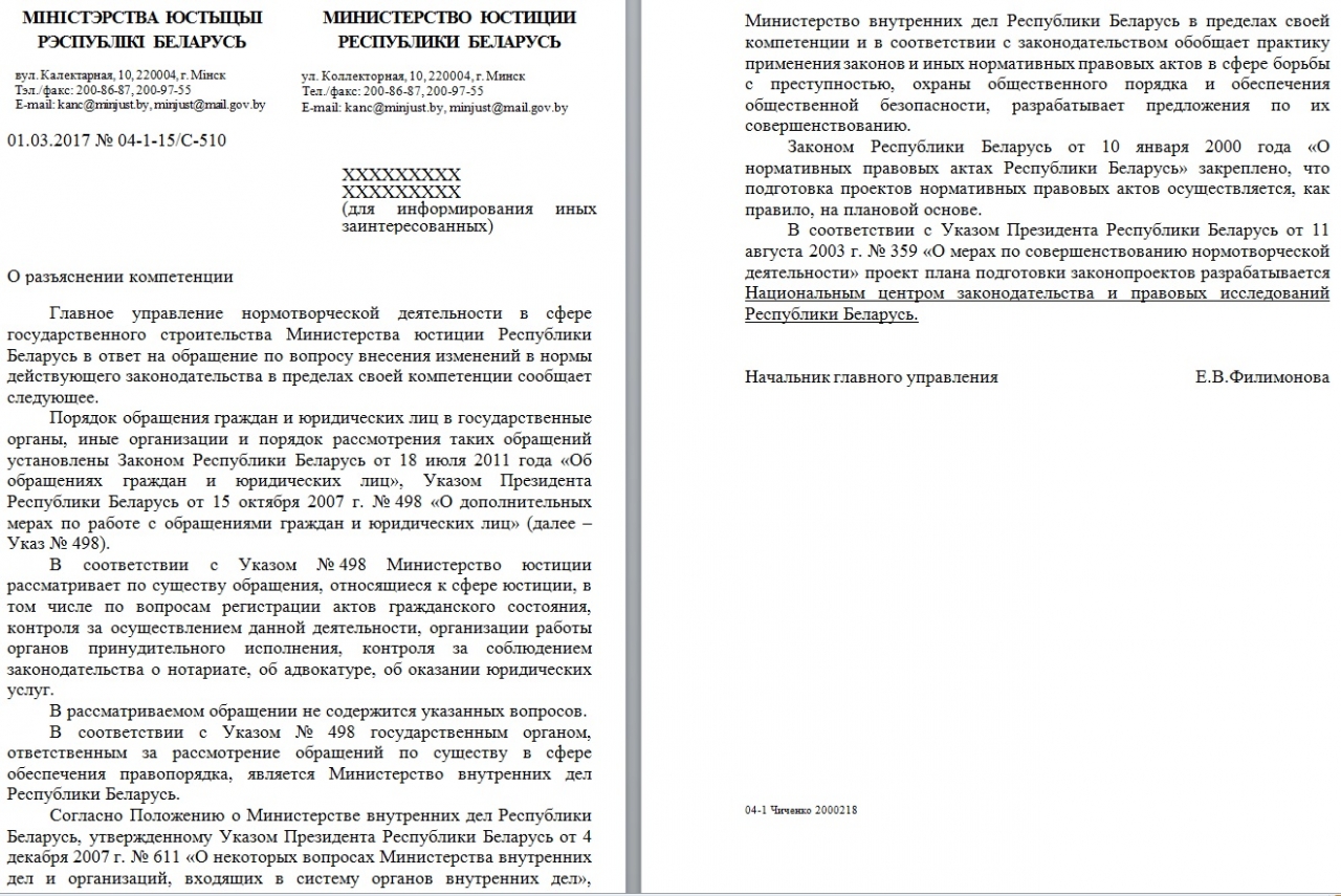 Ответственным за рассмотрение обращений по существу в сфере обеспечения правопорядка, является Министерство внутренних дел Республики Беларусь.