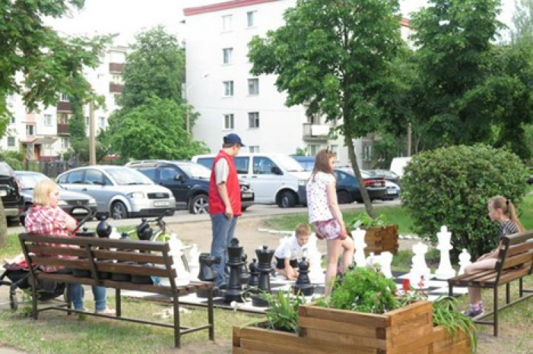 Уличные шахматы и площадка для игры в них не могут постоянно находиться в парке из-за низкой культуры отдельных граждан, поэтому переданы на хранение в ГУ "Территориальный центр соцобслуживания населения Партизанского района г.Минска".