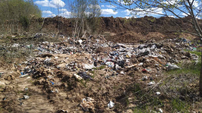 Настоящим обращением сообщаем Вам, что в д.Старое Село, между кладбищем и дорогой Дзержинск-Заславль организована несанкционированная свалка бытового мусора. Размер свалки несколько гектаров. Фото прилагаем к обращению.