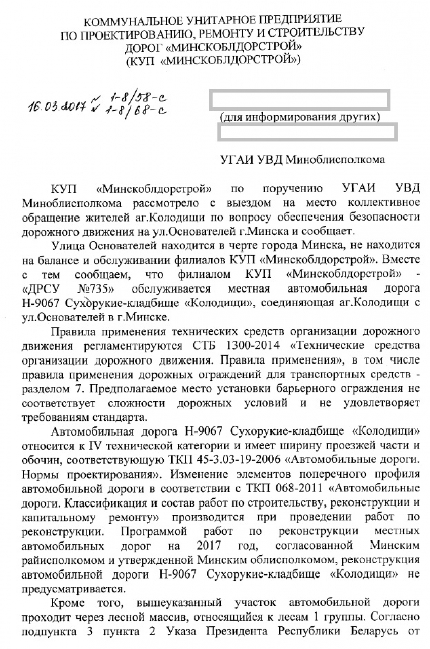 В связи с неоднократными ДТП, в том числе со смертельными исходами, на участке по ул.Основателей требуем: