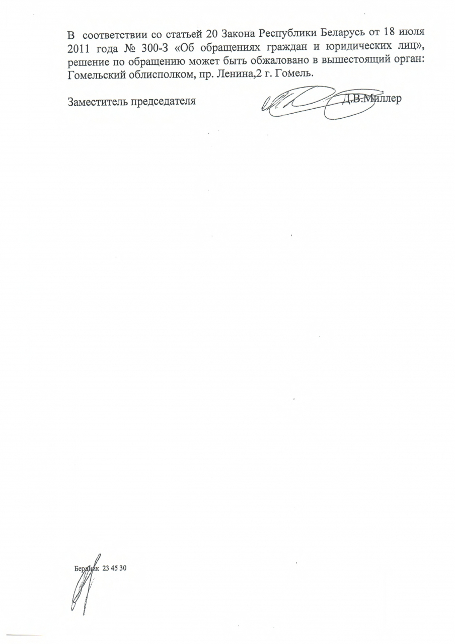 Просим рассмотреть настоящее обращение и направить ответ в соответствии с Законом Республики Беларусь от 18.07.2011г. № 300-3 (ред. от 15.07.2015) «Об обращениях граждан и юридических лиц».