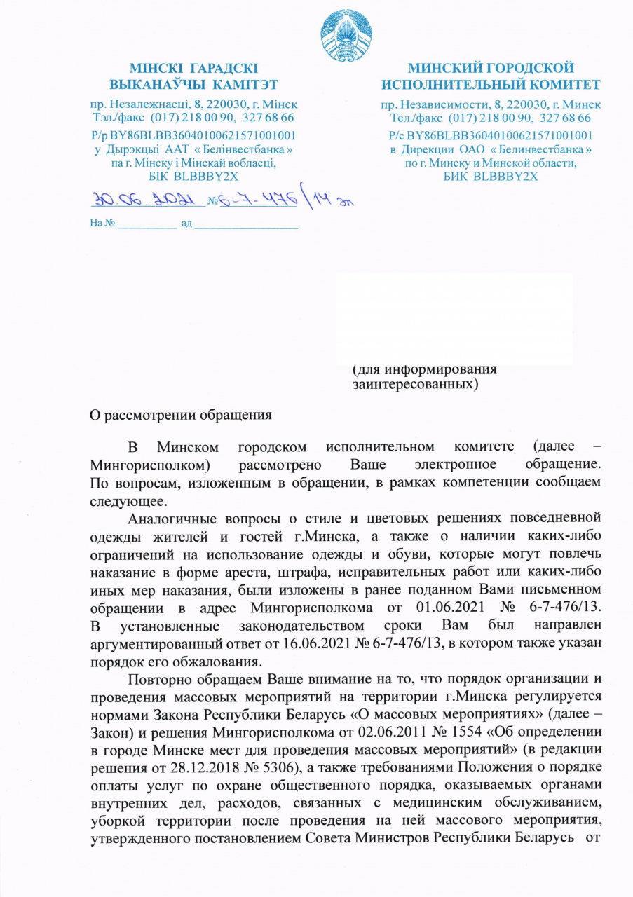- https://nn.by/?c=ar&i=266942 (жительницу г. Гродно за теплые штаны с бело-красными лампасами и оштрафовали на 580 рублей);