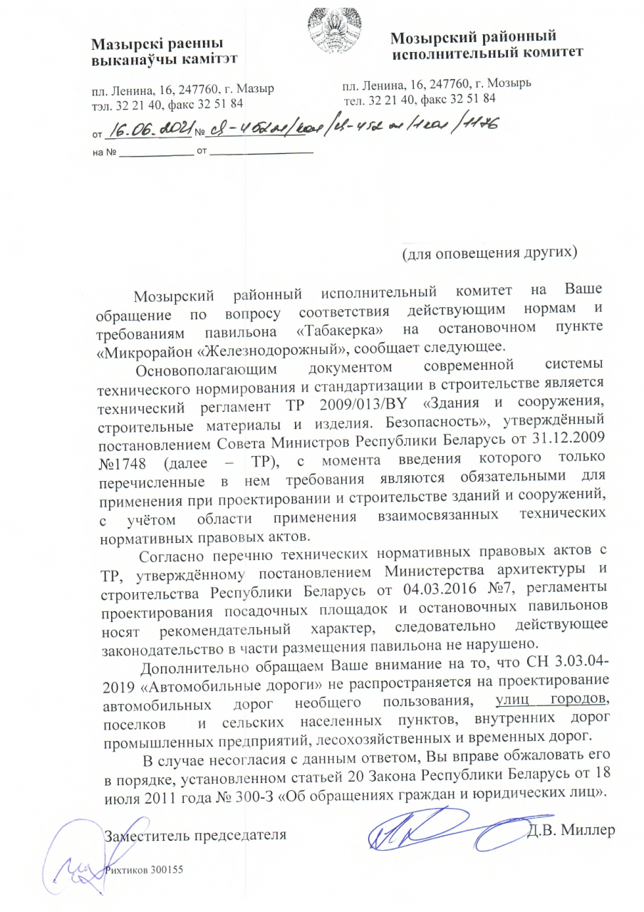 На остановке "Микрорайон Железнодорожный" на ул.Николая Островского в Мозыре установили "Табакерку" в 180 см от края проезжей части, что является нарушением технических нормативных актов Республики Беларусь, а именно: