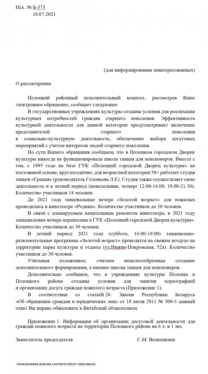 - поддержать интерес пенсионеров, и снова открыть школу танцев в Полоцком городском доме культуры.