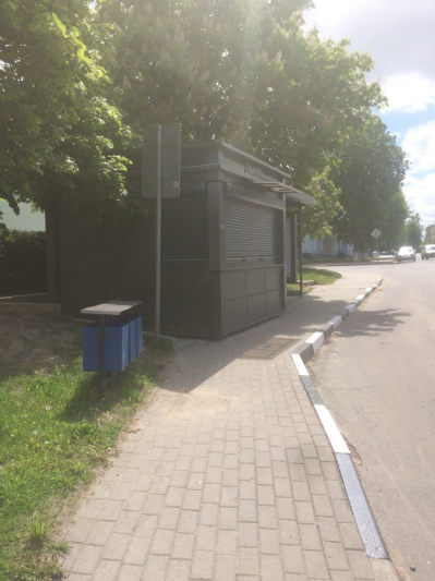 На остановке "Банк" на улице Комсомольской (г.Смолевичи) установлена "Табакерка" в 130 см от края проезжей части, что является нарушением технических нормативных актов Республики Беларусь, а именно: