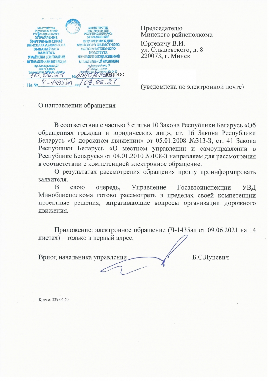УГАИ УВД Миноблисполкома готово рассмотреть в пределах своей компетенции проектные решения, затрагивающие вопросы организации дорожного движения.