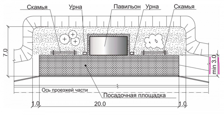 1. павильон должен быть размещен на расстоянии 3 м от края проезжей части;