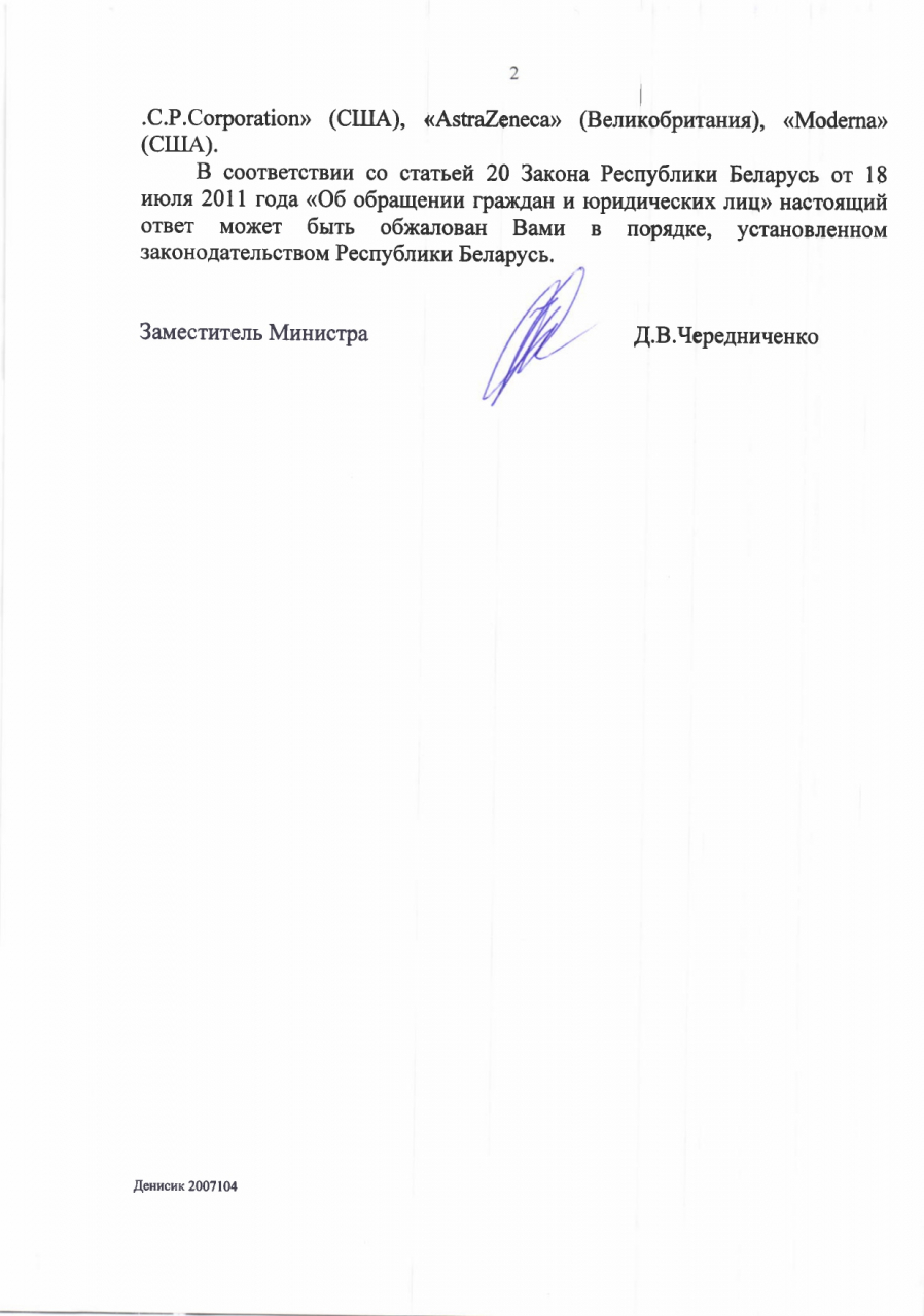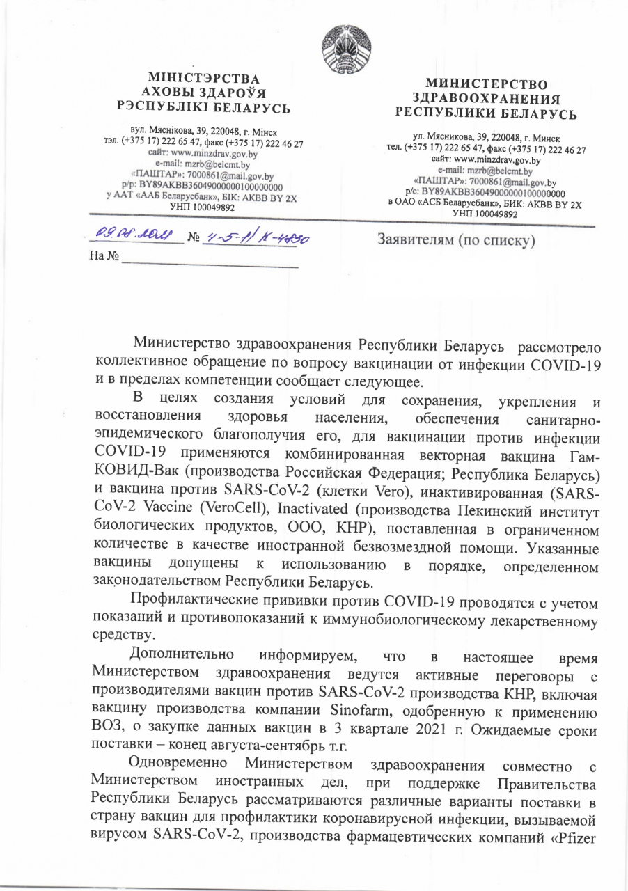 Мы, нижеподписавшиеся, просим обеспечить населению возможность, хотя бы на платной основе, прививаться вакцинами не только российского или китайского производства, но и другими: