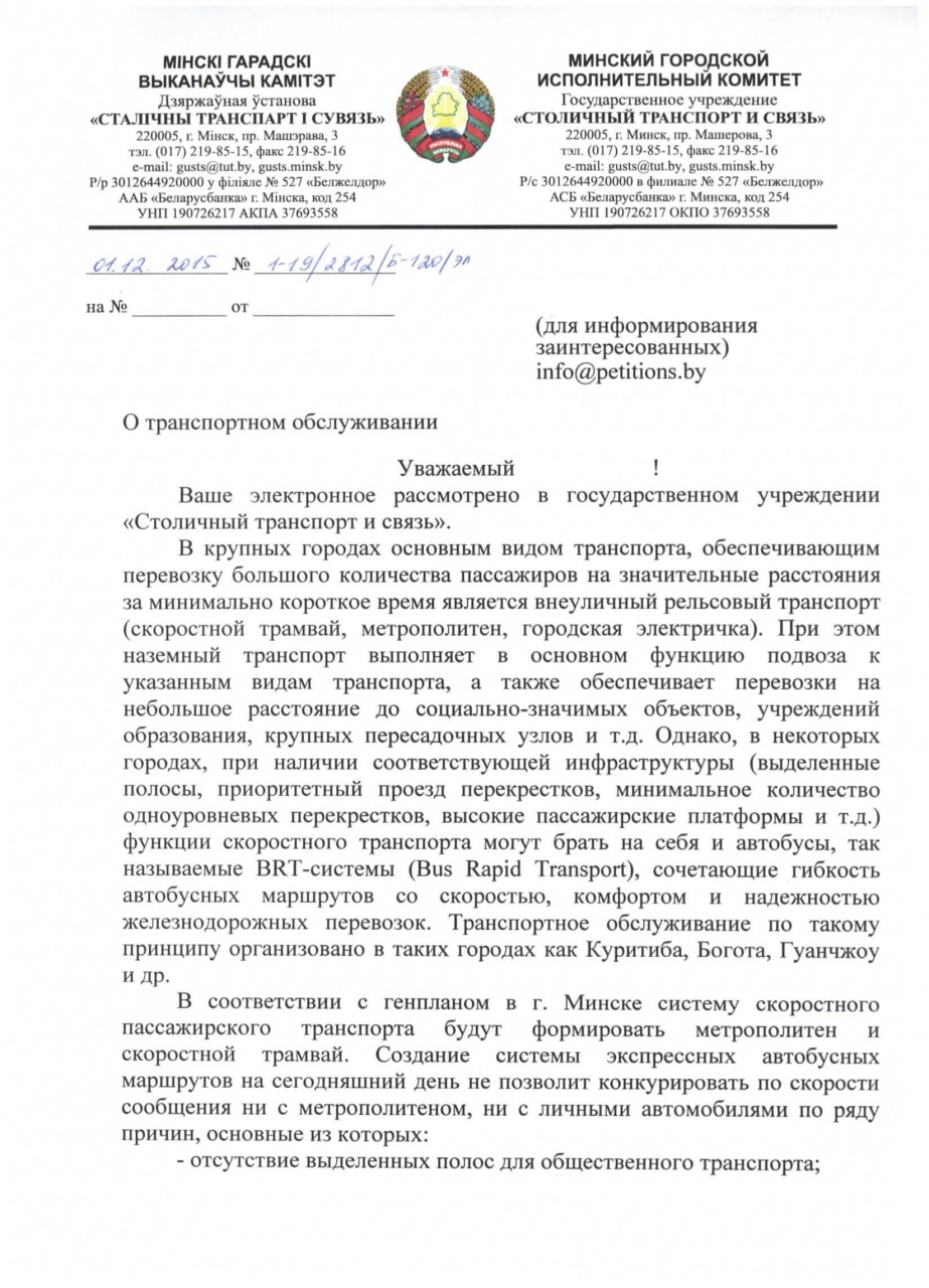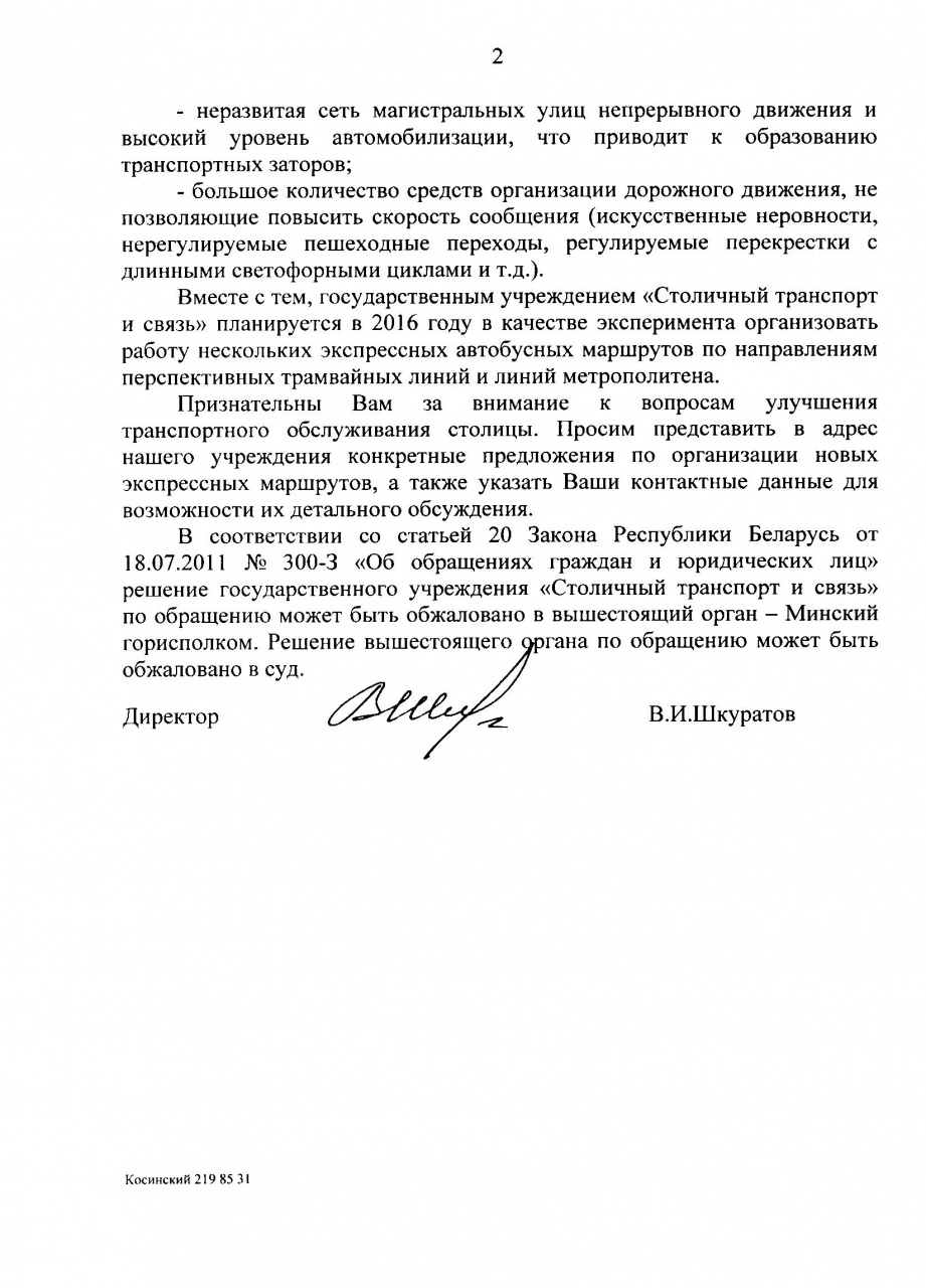 Необходимо создание такого маршрута и на МКАД, на отрезках первого и третьего транспортных колец, в микрорайоны Сухарево, Серебрянка, Лошица и проч.