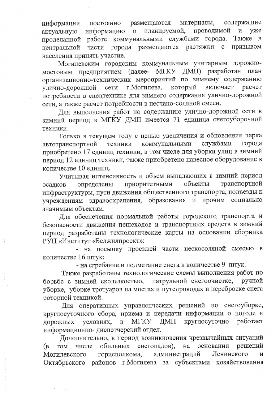 Для оперативной организации работ по уборке дворовых проездов в зимний период на предприятиях разрабатываются графики работы снегоуборочной техники. В текущем году приобретено 12 ед. техники для уборки улиц в зимний период и 10 ед. навесного оборудования. Разработаны технологические карты для обеспечения работы городского транспорта и безопасности движения пешеходов и транспортных средств в зимний период.