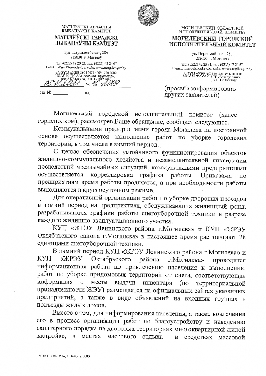 Зима 2020-2021 гг показала нам, что коммунальные и экстренные службы Могилёва не справляются с уборкой города в экстремальных погодных условиях. По нашим наблюдениям, нет запасов песка, реагентов. Мы - жители города не проявляем активность в помощи коммунальным службам.