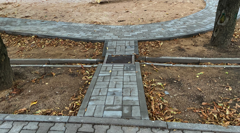 Во время ремонта один из двух переходов через ливнесток был сужен в полтора раза. Представитель Подрядчика на встрече с жильцами 26 июля 2021 года объяснил это тем, что одна из двух решёток, которые лежали в этом месте ранее, была украдена во время ремонтных работ. Из-за этого качество тротуара после ремонта не только не улучшилось, но стало хуже, так как упала его пропускная способность.