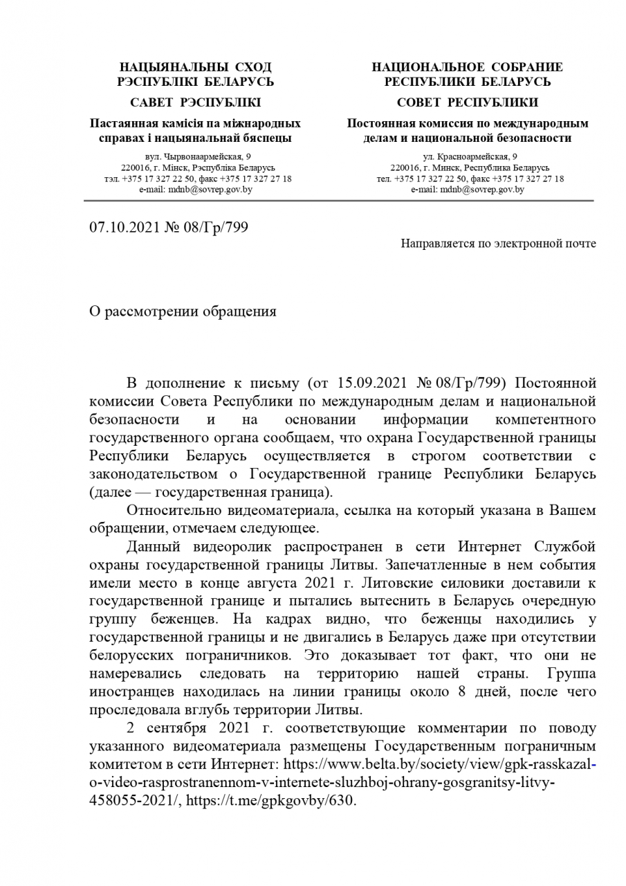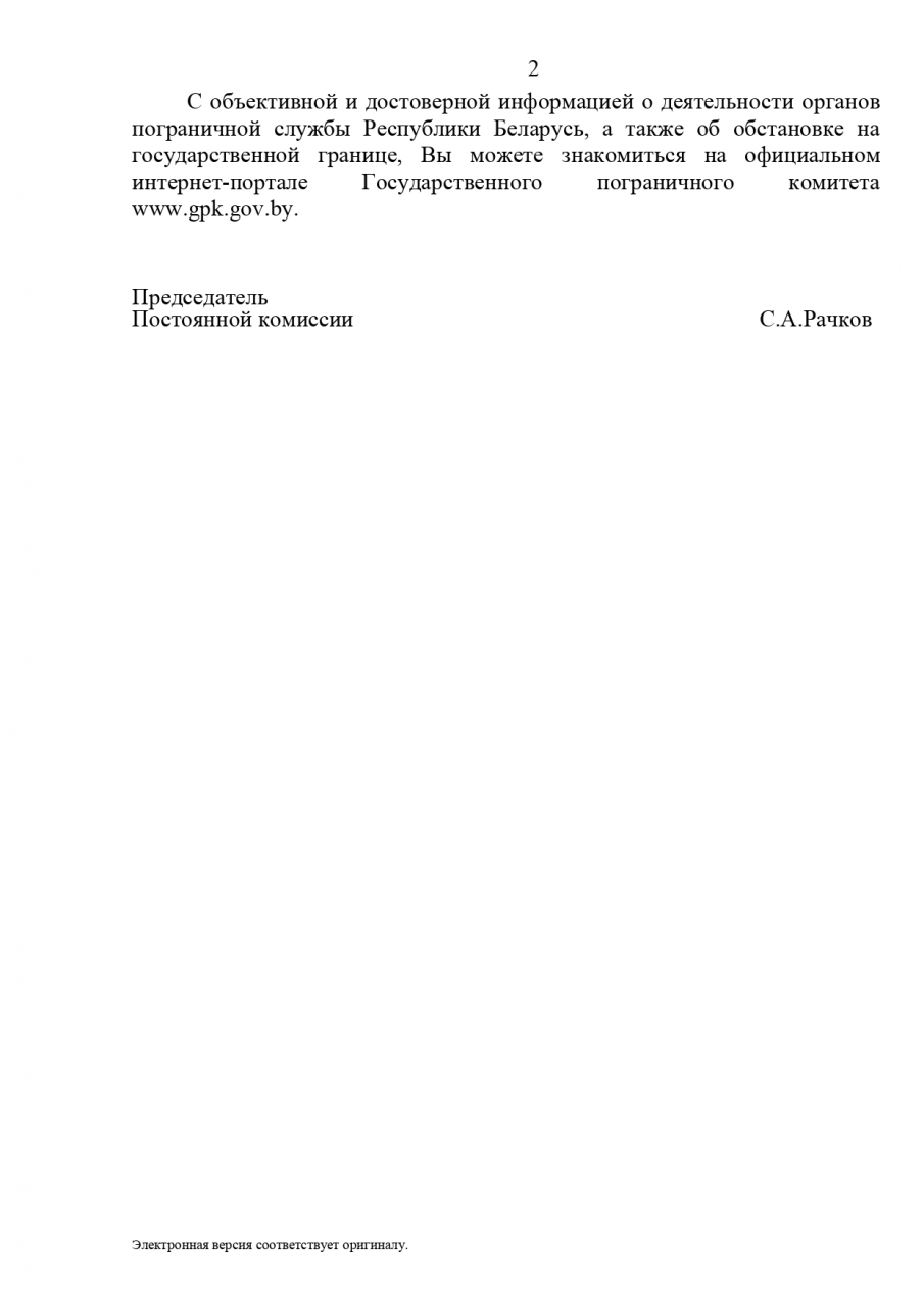 В связи с чем, как избиратели 50-го Гродненского-Октябрьского округа и иные заинтересованные граждане обращаем Ваше внимание, что у нас имеются достаточные основания подозревать о допущении бездействия и (или) попустительства государственных органов Республики Беларусь, осуществляющих контроль и безопасность за государственной границей Республики Беларусь, которые в свою очередь, на наш взгляд: