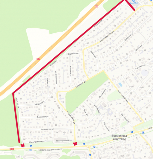 2. В конце 2020 года построен торговый центр «Нова Молл», тротуар к которому проложили только из центра посёлка Лесной. Для остальной части населения Боровлян («частников») путь к магазину связан с рисками для жизни и здоровья пешеходов, велосипедистов и автомобилистов из-за отсутствия пешеходных связей.