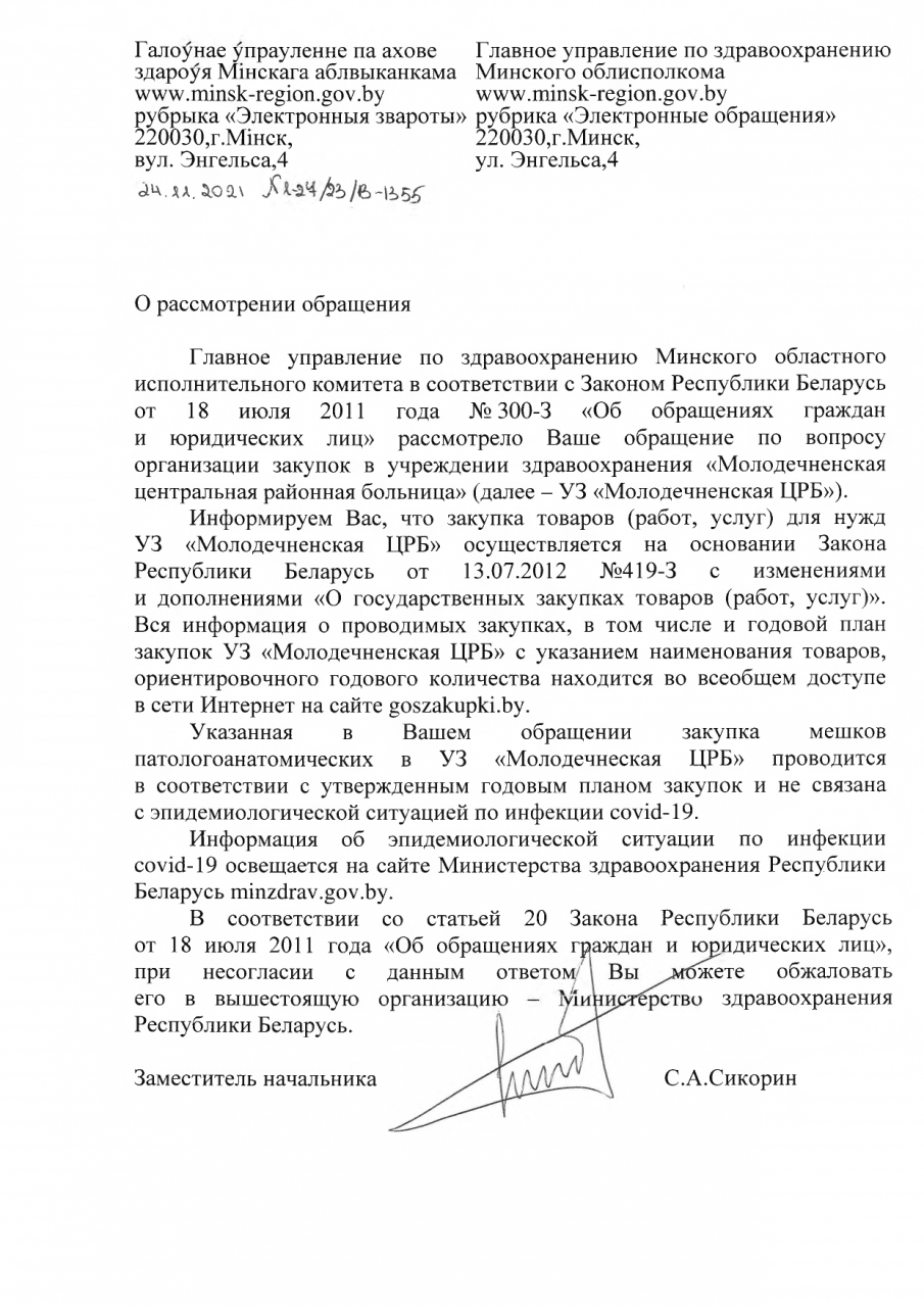 - связана ли закупка за неполные 3 месяца 2021 года 375 мешков патологоанатомических для нужд УЗ "Молодечненская центральная районная больница" с большой смертностью пациентов учреждения от COVID-19?