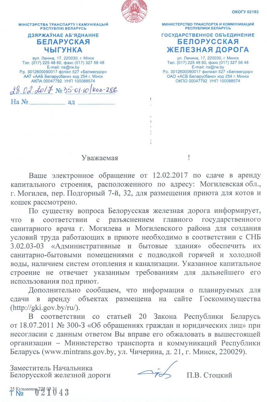 Просим оказать содействие в возвращении БелЖД к вопросу сдачи в аренду данного помещения или в поиске нового подходящего помещения.