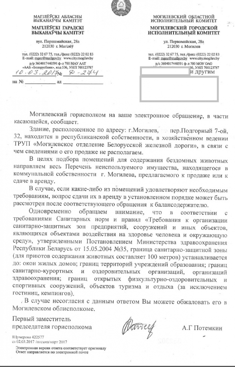 На сегодняшний день Могилев - единственный областной центр, где нет приюта для китов и кошек.