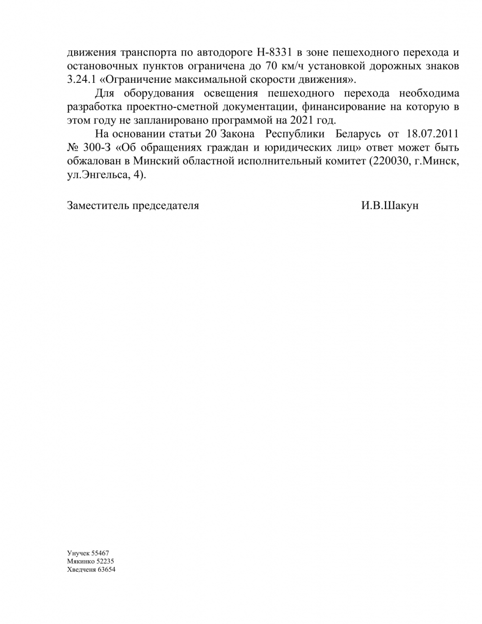 2.2. оборудовать освещённые пешеходные переходы через трассу Н8331 к остановочным пунктам "Михалово" и "Междуречье";