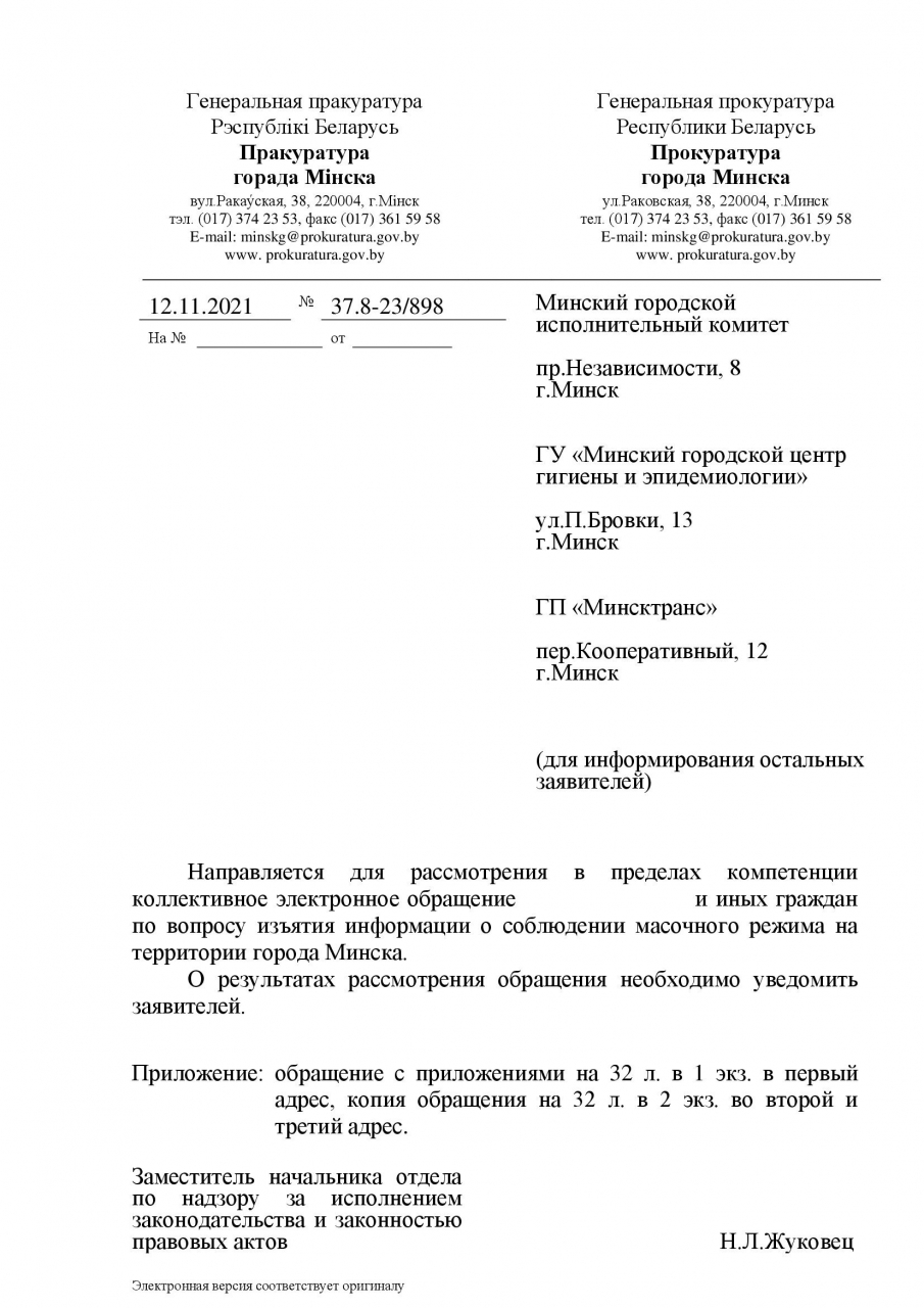 Прокуратуру города Минска: