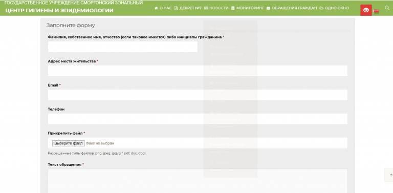 - Специальная рубрика «Электронные обращения», размещенные на сайте Сморгонского ЗЦГЭ, приведена в соответствии с установленными требованиями.