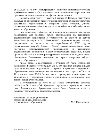 На обращение получены несколько ответов (также прилагаются) от Министерства образования Республики Беларусь от 11.11.2021 №02-01-3268-Кол-(0)-0 и от Главного управления образования Гомельского облисполкома №01-25/Г-В-20/1-Эл.