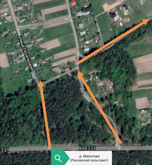 П. 2.1) В ответе Воложинского райисполкома написано, что указанные в коллективном обращении неосвещённые участки дорог и улиц не входят в уличную сеть населённых пунктов. Однако, эти участки являются единственными путями по движению жителей от остановочных пунктов "Михалово" и "Междуречье" до основного массива застройки д.Михалово (данные места обозначены оранжевыми стрелками в файлах, прикреплённых к данному обращению).