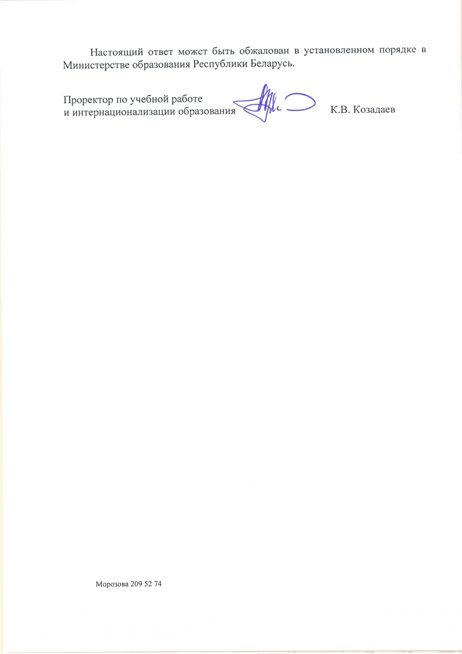 - подписал: Проректор по учебной работе и интернационализации образования Козадаев К.В.