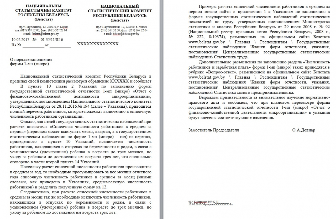 Постановлением Национального статистического комитета Республики Беларусь от 28.11.2016 № 194 утверждены указания по заполнению формы государственной статистической отчетности 1-мп (микро) «Отчет о финансово-хозяйственной деятельности микроорганизации» (далее – Указания).