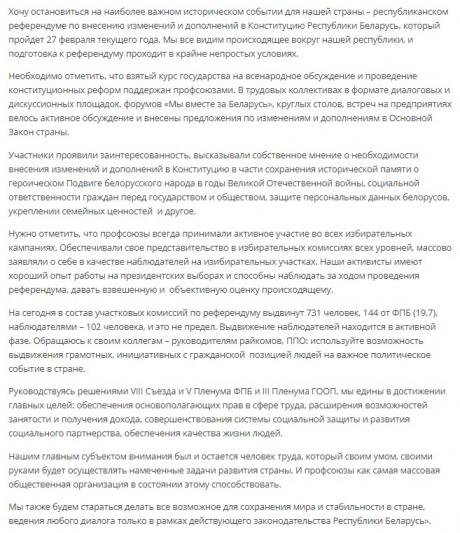 - провести проверку по признакам наличия в действиях члена комиссии по референдуму А.П.Козакевич фактов нарушения требований статьи 37 Избирательного кодекса РБ;
