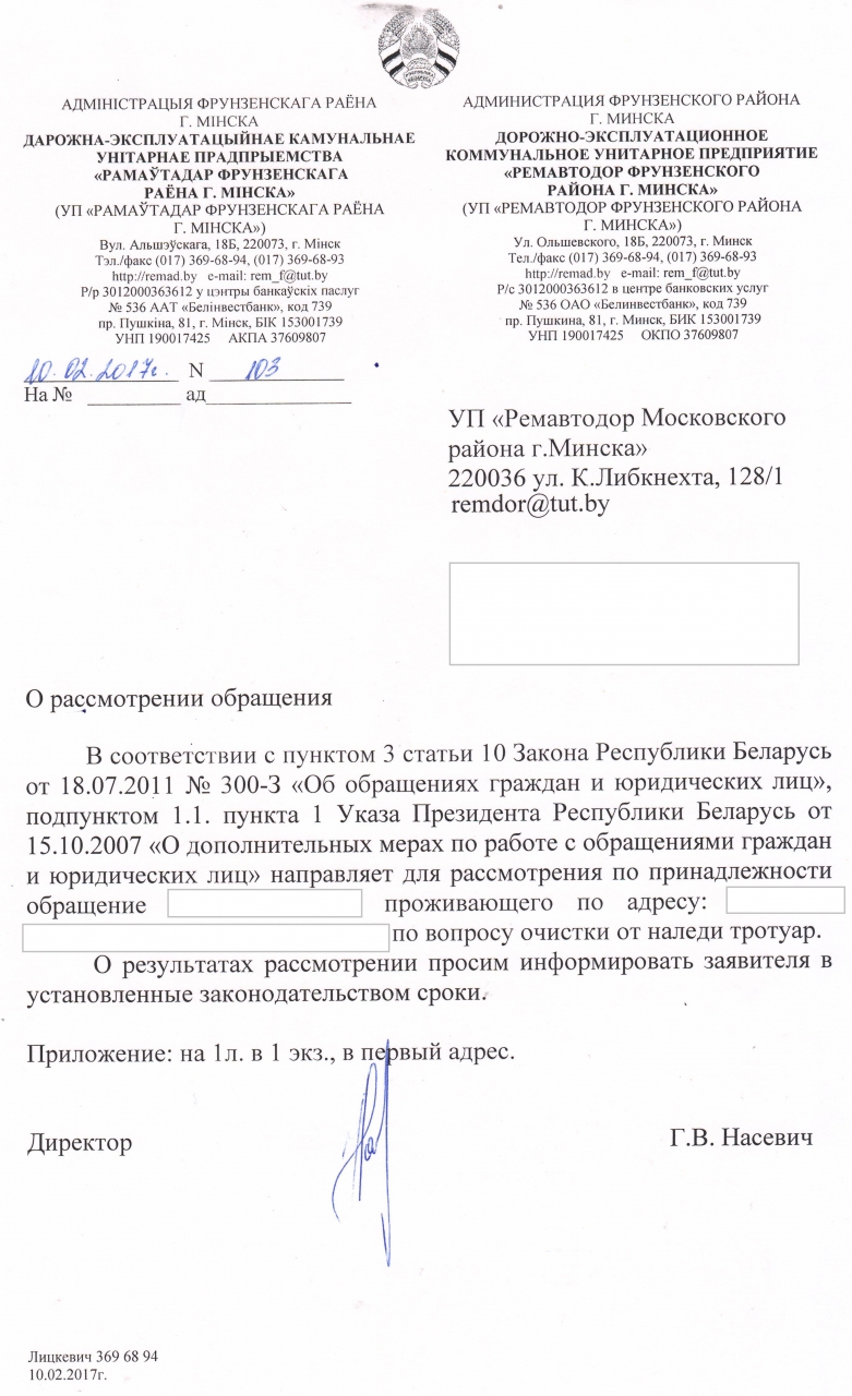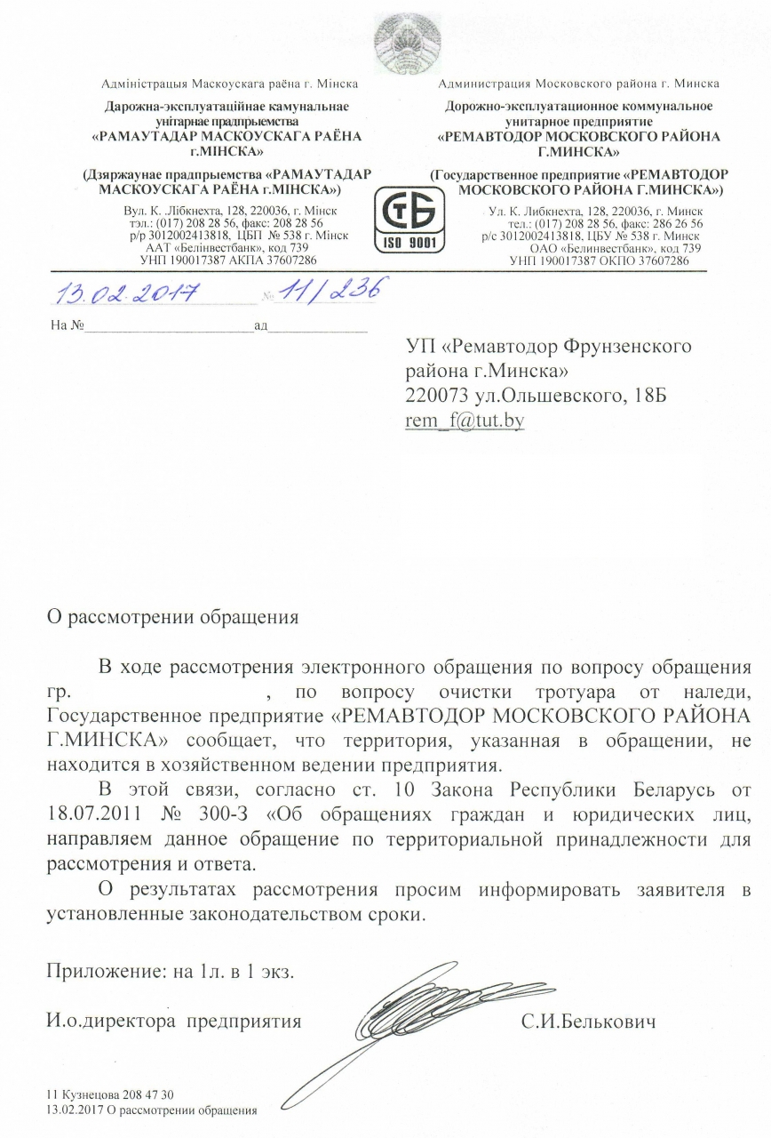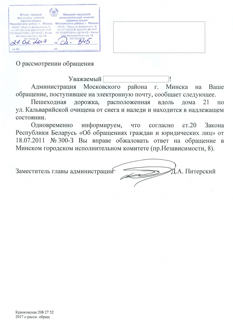 Прошу очистить ото льда тротуарную дорожку вдоль дома 21 по улице Кальварийской города Минска по направлению от станции метро Молодежная к улице Короля
