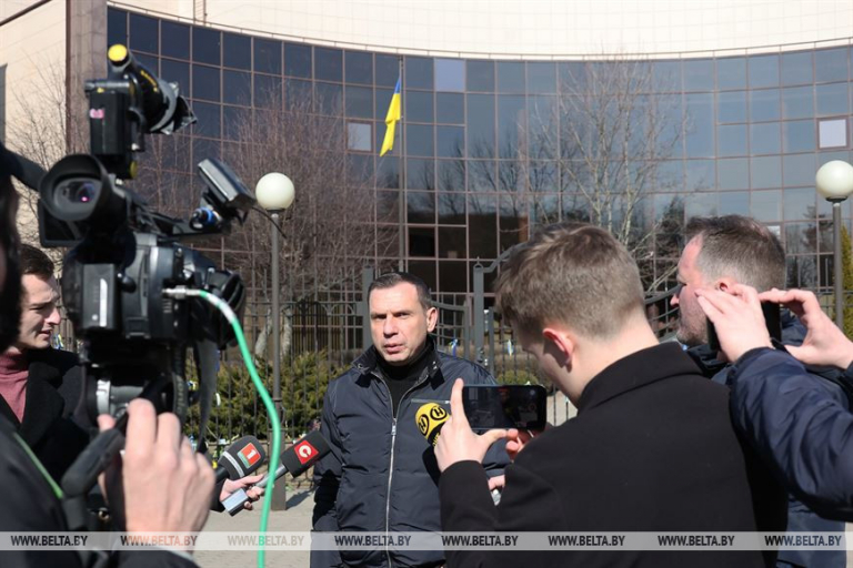 Согласно материалу "Люди говорят натовцам: не лезьте в нашу славянскую семью, мы здесь сами разберёмся", размещённому на сайте sb.by, 20 марта 2022 г. у здания посольства Украины, расположенного по адресу: г.Минск, ул.Старовиленская, 51, группой граждан проведено массовое мероприятие, среди участников которого замечены, в том числе Олег Гайдукевич (депутат Палаты Представителей), Юрий Воскресенский (провластный политолог), Григорий Азарёнок (ведущий телеканала СТВ).