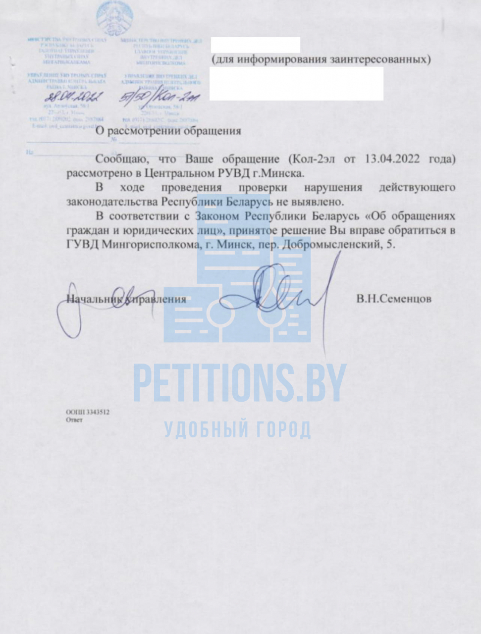 В ходе проведения проверки нарушения действующего законодательства Республики Беларусь не выявлено.