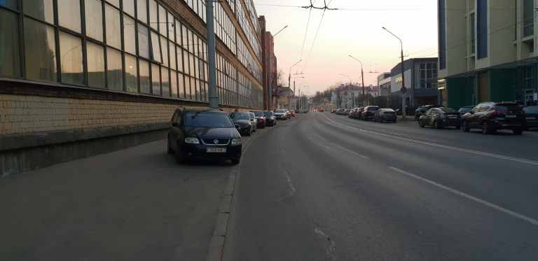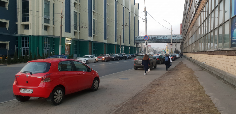 На отрезке улицы Куйбышева, от улицы Киселёва до проспекта Машерова, существует три предназначенных для парковки участка: у зданий №18, №35, №45 на улице Куйбышева. Данные парковки ограничены знаками 5.15 (место стоянки) и 3.27 (остановка запрещена) в начале и конце каждой соответственно. Таким образом, парковка транспортных средств на данном отрезке улицы Куйбышева предполагается только в вышеуказанных местах. Фактически водители паркуют транспортные средства и за пределами обозначенных для парковки зон: на тротуаре, на заезде на территорию завода.