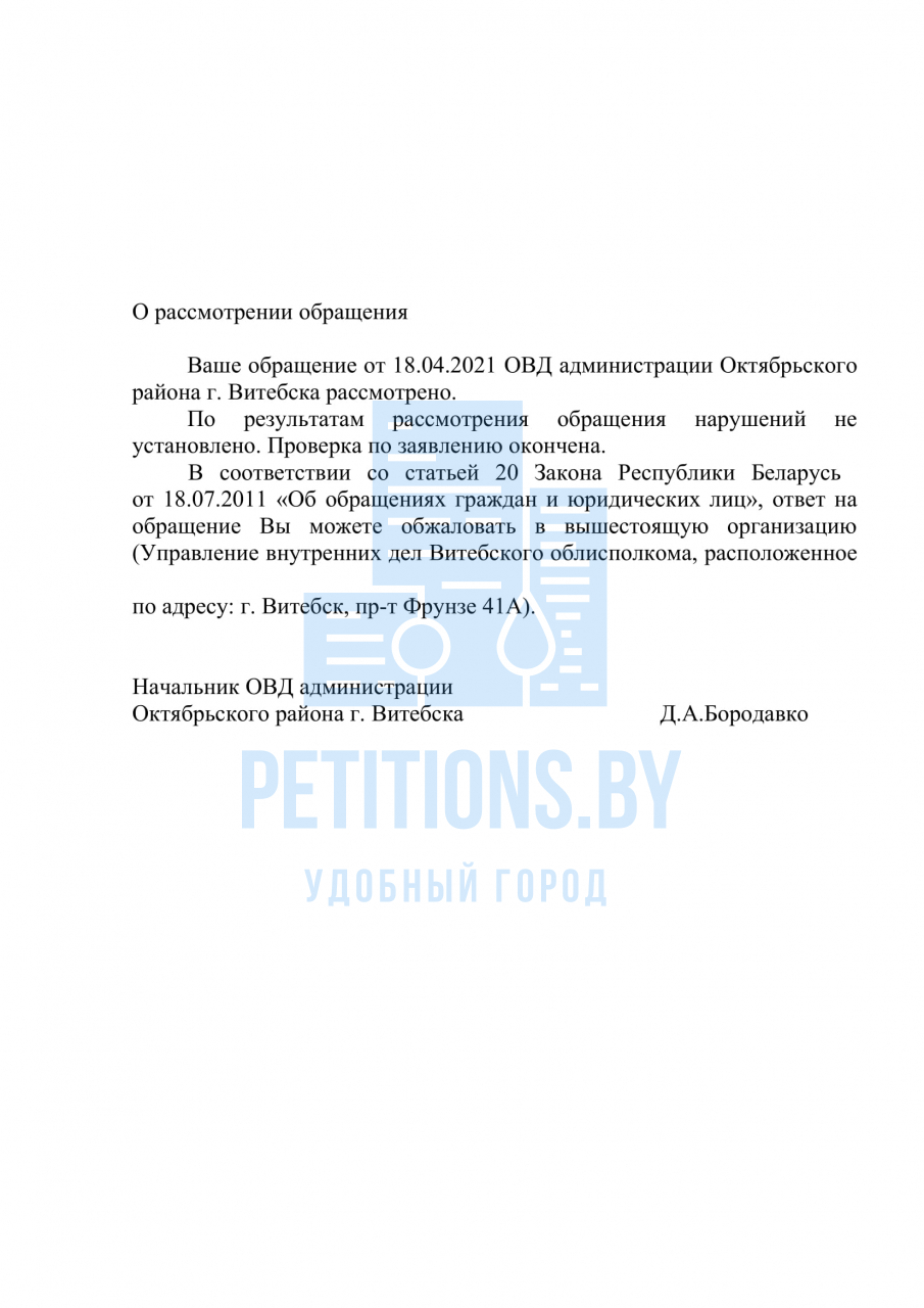 11 февраля 2022 г. получен ответ на электронное обращение (копия прилагается) по поводу проверки сайтов Витебской епархии и Витебской семинарии на предмет распространения ими экстремистских материалов.