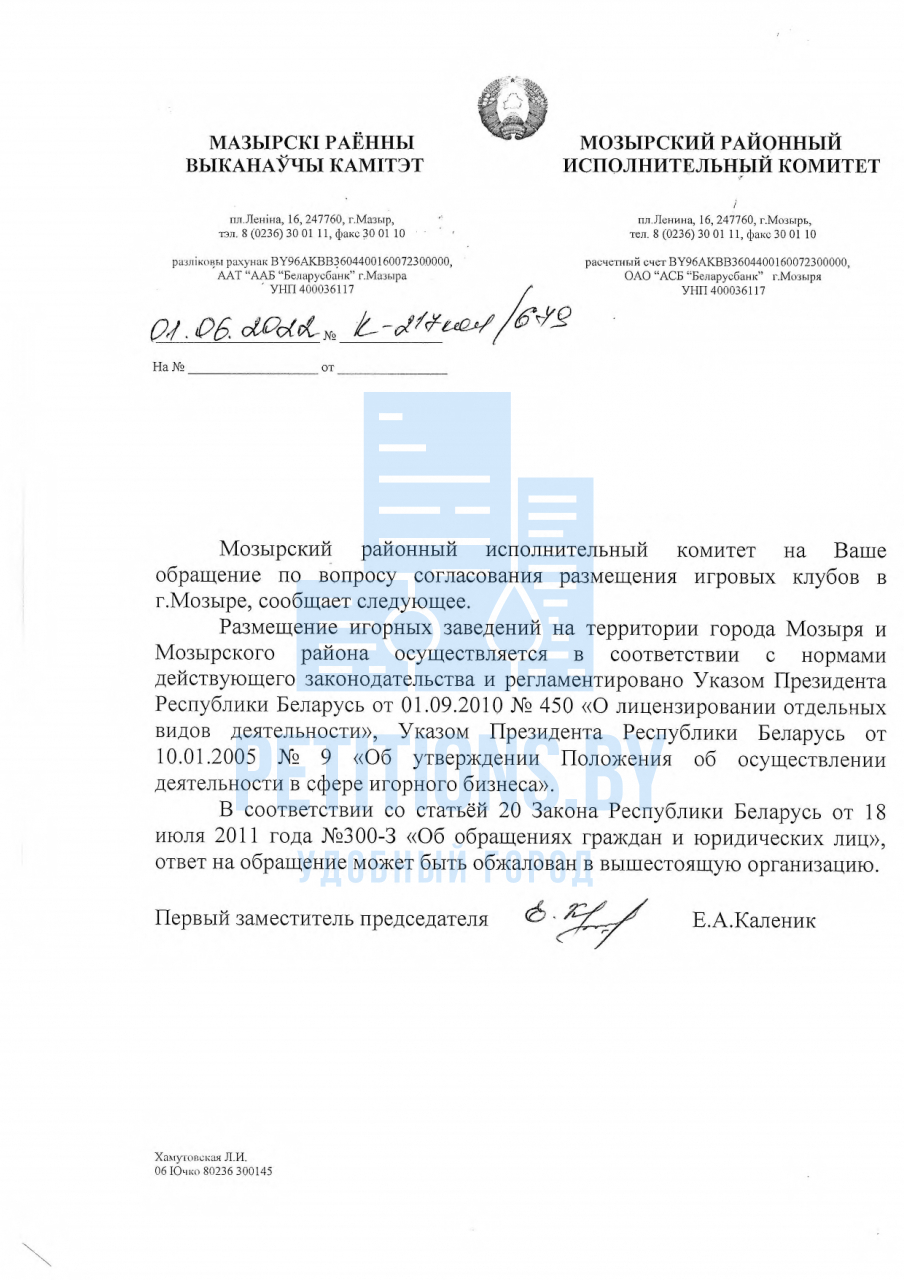 Подписывая настоящее обращение, мы требуем прекратить выдавать соответствующие согласия на размещение игровых клубов в Мозыре и не допускать согласования новых точек с азартными играми на территории города.