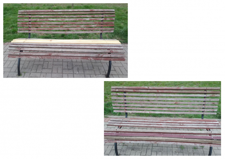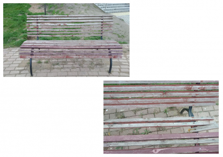 - на некаторых лаўках дошкі адсутнічаюць, альбо трэснулі;