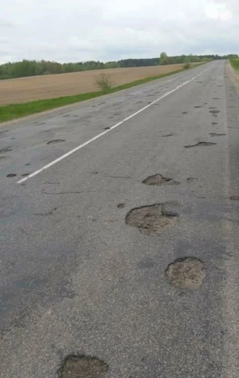 Асфальтное покрытие автомобильной дороги Н-276 в Барановичской районе (участок Мостытычи - Омневичи) находится в плохом техническом состоянии, и покрыта множеством ям и выбоин.