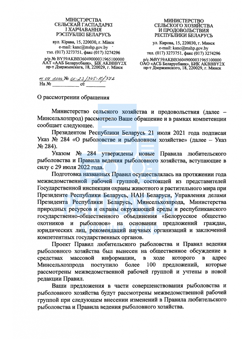 В виду участившегося неконтролируемого вылова рыбы в рыболовных угодьях Республики Беларусь (за исключением переданным в аренду) с целью получения выгоды, в связи с многократными нарушениями Правил любительского рыболовства со стороны недобросовестных граждан просим рассмотреть следующие предложения: