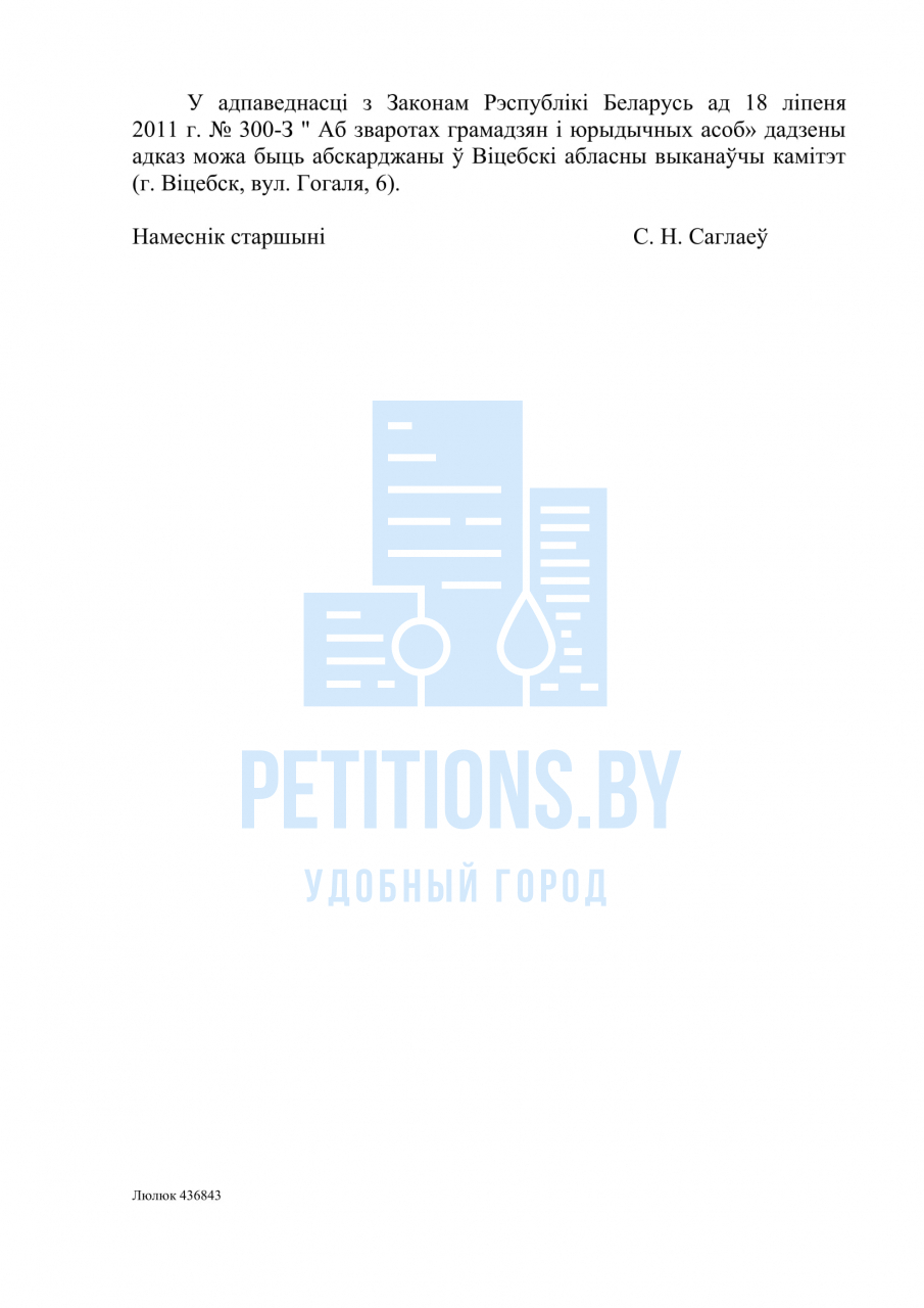 • даць абгрунтаваны і матываваны адказ па сутнасці з канкрэтнымі фармулёўкамі і спасылкамі на нарматыўныя прававыя акты (пункт 1 артыкула 18 Закона ад 18.07.2011 года № 300-З "Аб зваротах грамадзян і юрыдычных асоб");