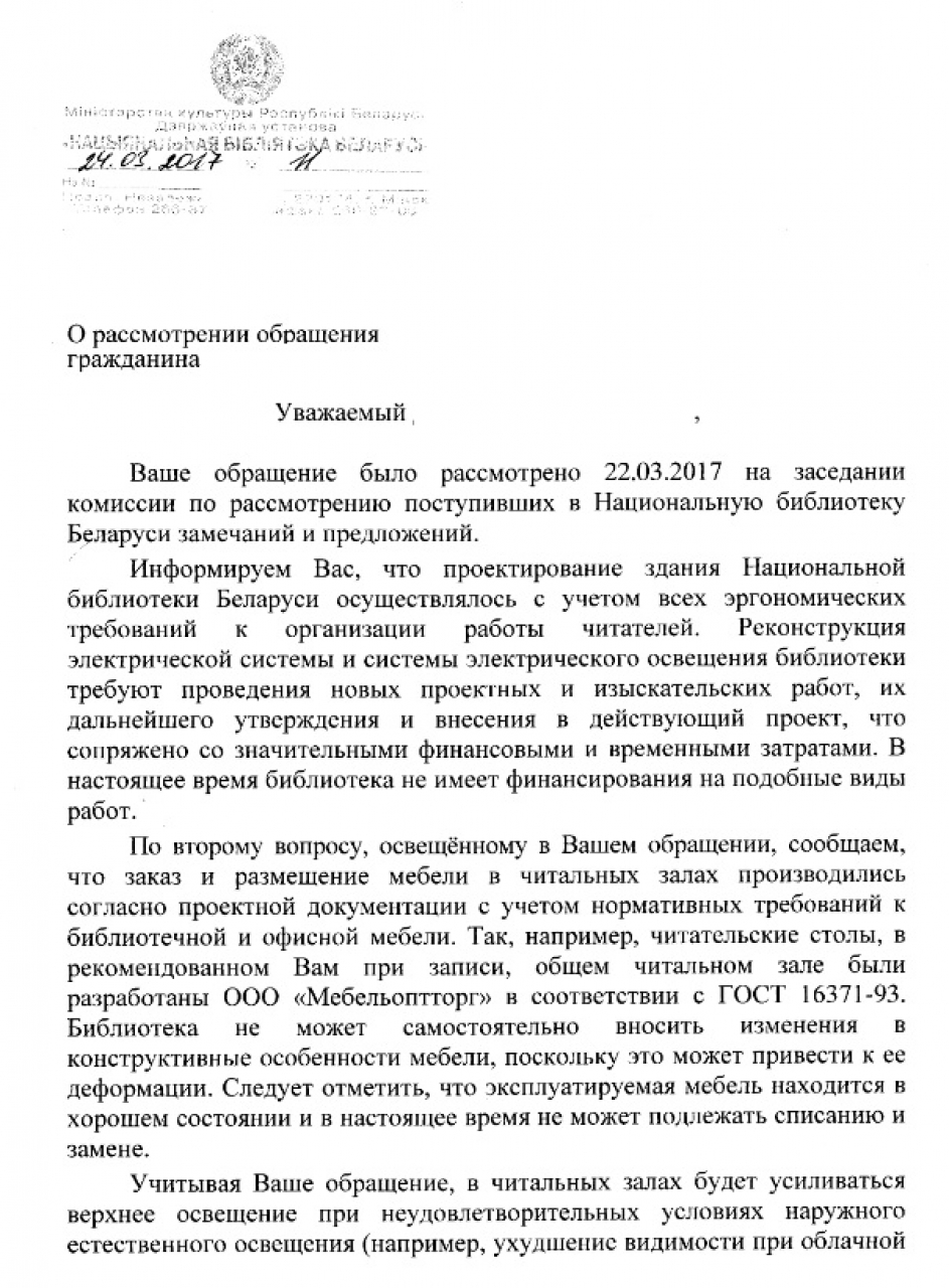 На реконструкцию системы освещения нет финансирования. Мебель изготовлена по ГОСТу, находится в хорошем техническом состоянии, оснований для ее замены и списания нету.