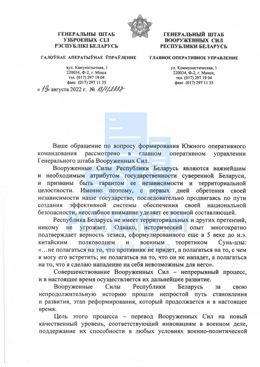 В этой связи наличие на южных рубежах Беларуси подразделений и воинских частей ЮОК, которые бы на постоянной основе выполняли задачи по прикрытию южной границы Беларуси, было бы оптимальным и логичным как с точки зрения экономической, так и военно-стратегической.