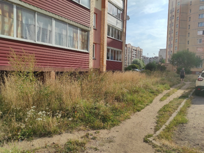 На территории микрорайона Аэропорт-3 в Полоцке, возле домов по проспекту Зодчего Иоанна, 10Б и 16А не производится покос травы. В настоящее время трава достигла высоты более 50 см., что производит неблагоприятное эстетическое впечатление, а также способствует распространение клещей.