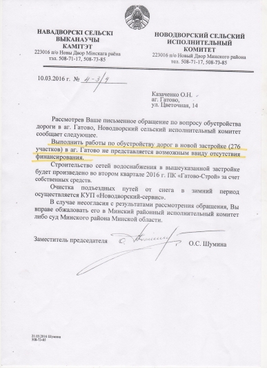 На устройство улиц, проездов квартала индивидуальной жилой застройкой в аг.Гатово Новодворский с/с Минского района (Северная и Южная часть) финансовых средств не хватило.