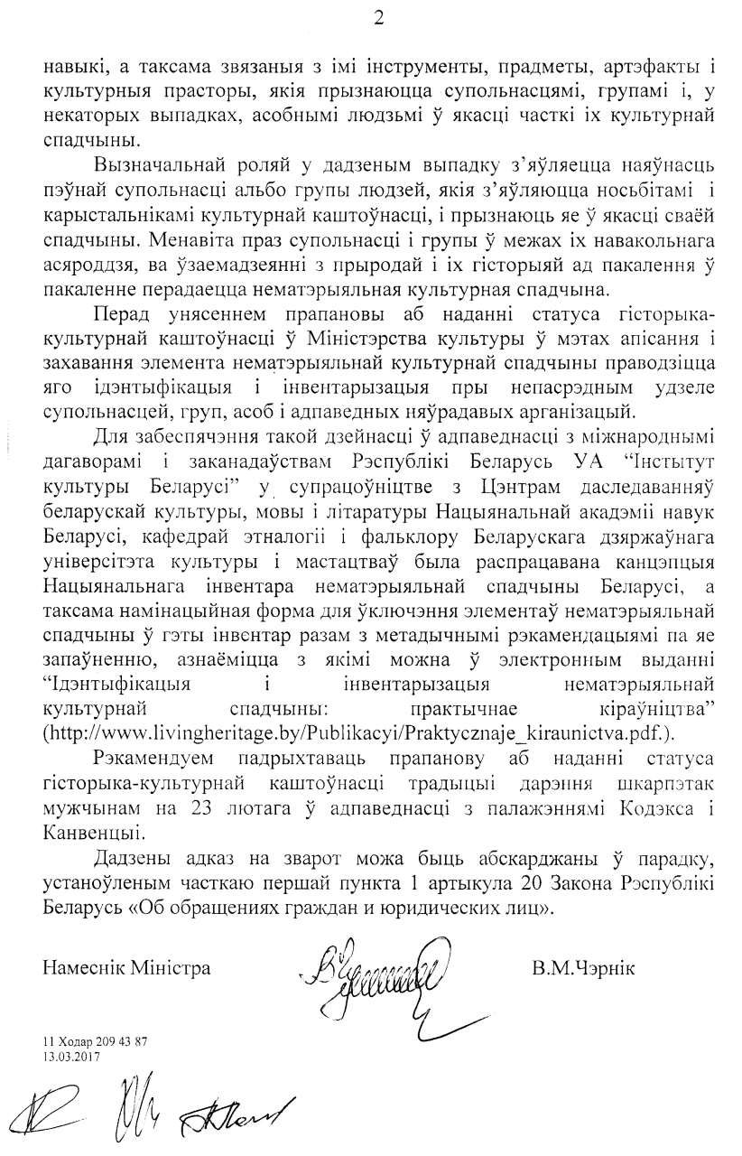 Лічым, што гэтая традыцыя вартая таго, каб ёй надалі статус гісторыка-культурнай каштоўнасьці.