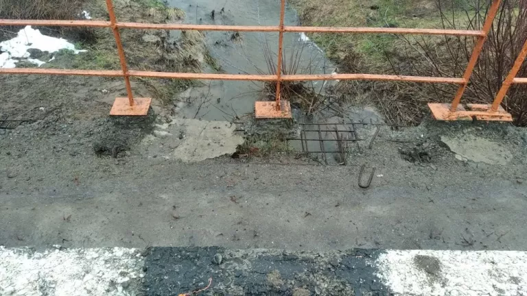 При техосмотре моста на ул. Комсомольской через р. Кричевка выявлено оголение арматурного каркаса пешеходной части. Кричевским УКПП «Коммунальник» выполнены работы по укреплению арматуры и ограждения. В 2024 году планируется капитальный ремонт ул. Ленинской, включая ремонт моста, при наличии финансирования. До начала работ будут устраняться критические дефекты.
