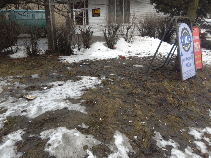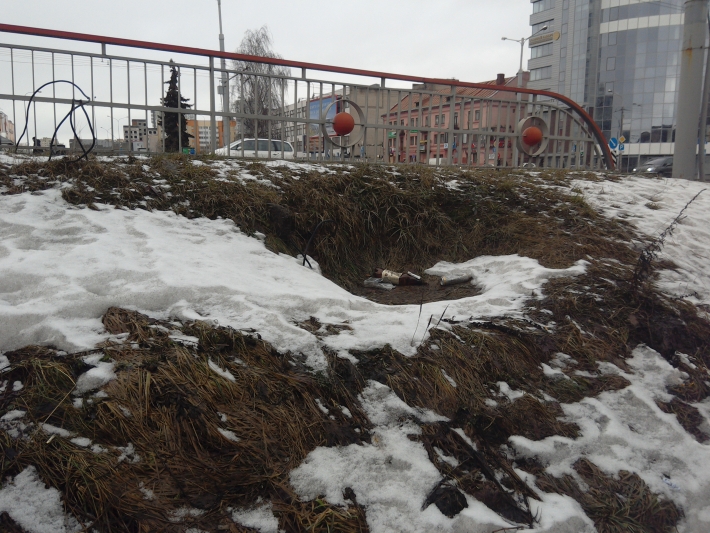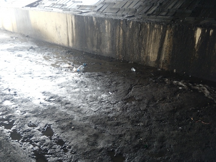 Из-за уничтоженного газона в этом месте всегда грязно, везде валяются окурки, пустые пластиковые бутылки, бутылки из под пива и водки, стаканчики, целлофановые обертки, резиновые покрышки и прочий мусор. Бесхозность этой территории доводит до того, что под мостом постоянно собираются и выпивают группы маргиналов, без определенного места жительства, и даже разводят костры!