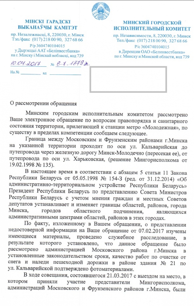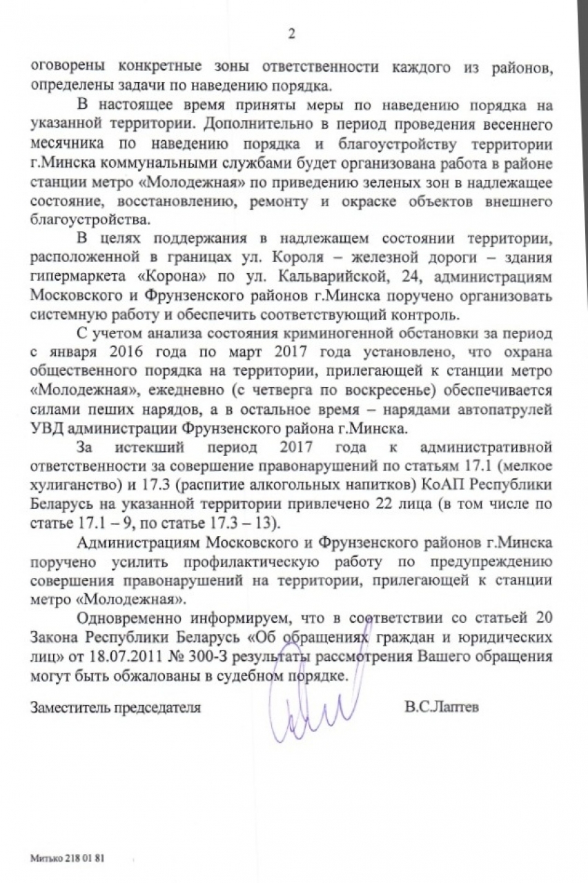 Однако главная проблема заключается в другом: отсутствие надлежащего контроля со стороны администрации Московского, Фрунзенского районов за состоянием смежной территории, перекладывание ответственности друг на друга создают условия для появления потенциально-криминогенной точки возле места массового скопления людей: выхода из станции метро "Молодежная" под мостом у железнодорожных путей.